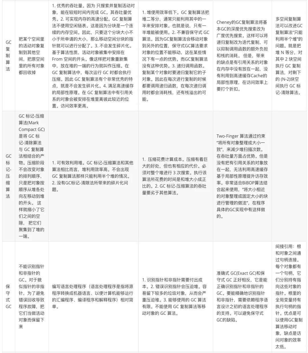 缺点:当创建准确式 GC 时,语言处理程序(语言处理程序是指将源程序转换成机器语言、以便计算机能够运行的汇编程序、编译程序和解释程序)必须对 GC 进行一些支援。也就是说,在创建语言处理程序时必须顾及 GC。增加了语言处理程序的实现复杂度。