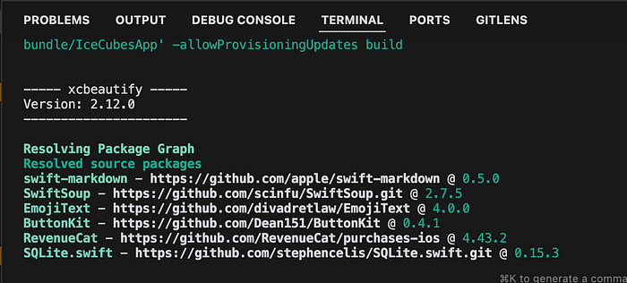 这将在Cursor终端中漂亮打印 Xcodebuild 输出。